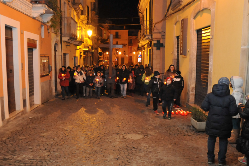 Scandito dalla preghiera e dalle meditazioni sulle varie stazioni e abbellito da tanti lumini sparsi per terra, il percorso si è snodato lentamente con momenti di profonda suggestione soprattutto in alcuni punti caratteristici del paese.