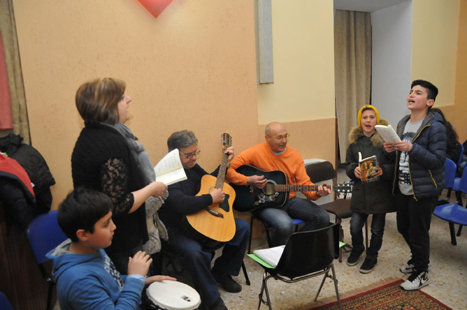 Nel momento in cui il vescovo entrava un canto di gioia lo ha accolto: e la riunione è continuata con un tempo di preghiera preparata e guidata da Padre Renato.