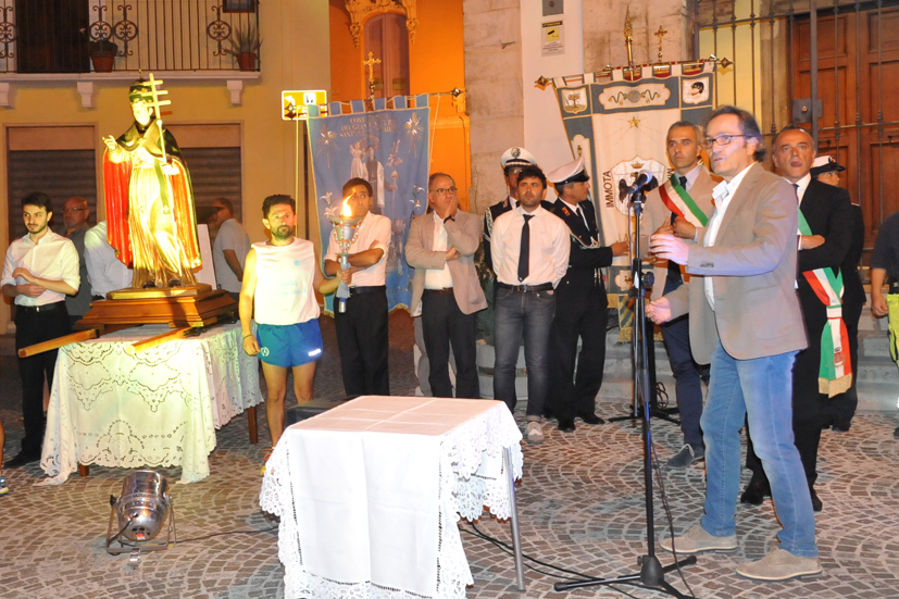 Nella sera del 17 agosto 2016, i tedofori che recavano la fiaccola, hanno fatto il loro ingresso fin “Dentro la terra”, provenendo dal Bagnaturo, dove la stessa fiaccola era stata accolta la sera prima, discendendo dall’eremo del Morrone.