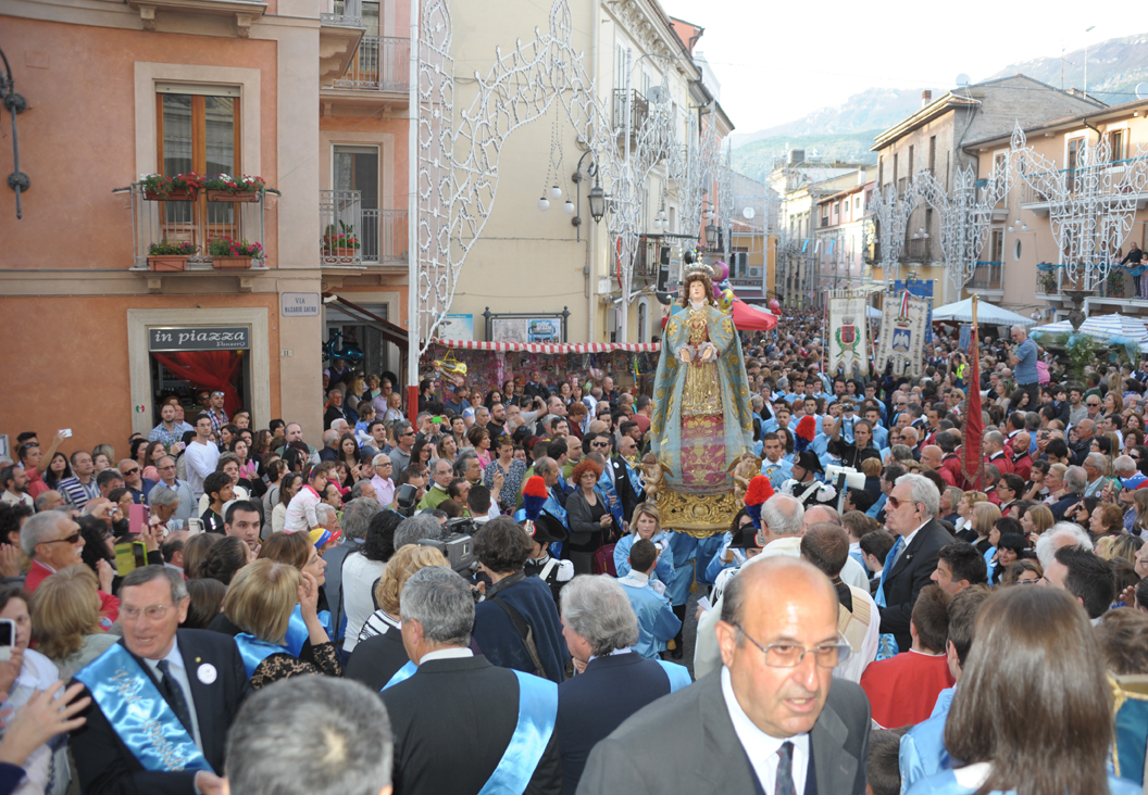 C’era tutto il paese, domenica pomeriggio 3 maggio 2015, alla processione, accompagnando la statua della Madonna della Libera che passava per le vie principali. Le bande di Pratola e di Bracigliano aprivano il corteo. 8760E poi dietro tante persone, le Arciconfraternite della Santissima Trinità del luogo e di Sulmona, le Confraternite di Sant’Antonio, i Comitati di San Rocco e della Madonna della Neve. E rappresentanze di altre Confraternite venute dall’Abruzzo e dal Lazio. Alternando preghiere, canti e musica religiosa, la statua della Madonna è 8846stata salutata nel suo lento incedere da tanti che la aspettavano affacciati ai balconi delle loro abitazioni. 8782 8914 Quando la statua è ritornata nella piazza antistante il Santuario, una folla straripante le faceva corona. 8959 Dopo la benedizione impartita dal parroco, P. Renato, i saluti e i ringraziamenti a coloro che avevano reso possibile una così sentita manifestazione religiosa, la statua è stata riposta nella navata laterale, e, nella notte, messa nell’abituale nicchia, dove ha continuato a ricevere l’omaggio di tanti fedeli.8784