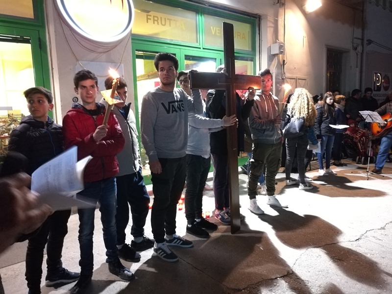 Alla lettura di un brano delle Scritture relativo alla stazione che si meditava, sono seguite brevi riflessioni: l’assenza del lavoro e delle prospettive di futuro nel territorio, il prevalere dell’avere sull’essere, le relazioni in famiglia, la scelta delle amicizie, la bellezza esteriore e quella interiore, la dignità del corpo e la sessualità, l’educazione per crescere, il bullismo ma anche la speranza ed il futuro da costruire.