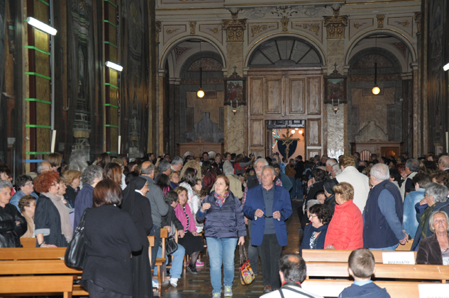 Preceduti dai canti dei cori maschili e femminili, accompagnati dalle note festose della banda cittadina, sono entrati in un Santuario, pieno all’inverosimile, i pellegrini di Gioia dei Marsi. Era la sera del venerdì che precede la festa della Madonna della Libera, e che quest’anno cadeva il 1° maggio. A loro si erano uniti anche molti pratolani, desiderosi di condividere almeno una volta questa forte esperienza.