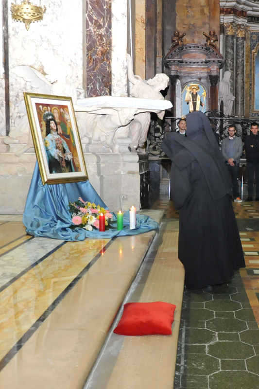 Due suore della clausura di Corfinio portano un cero alla immagine della Madonna della Libera