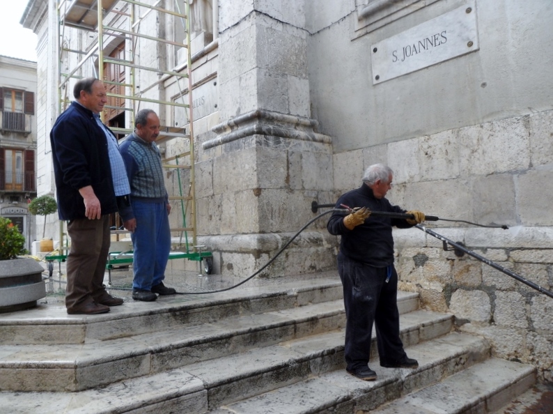 Con cura sono state restituite al loro nitore le quattro statue che si trovano nella nicchie a lato della porta centrale. Attenzione poi è stata rivolta agli altri marmi della facciata e alle gradinate.