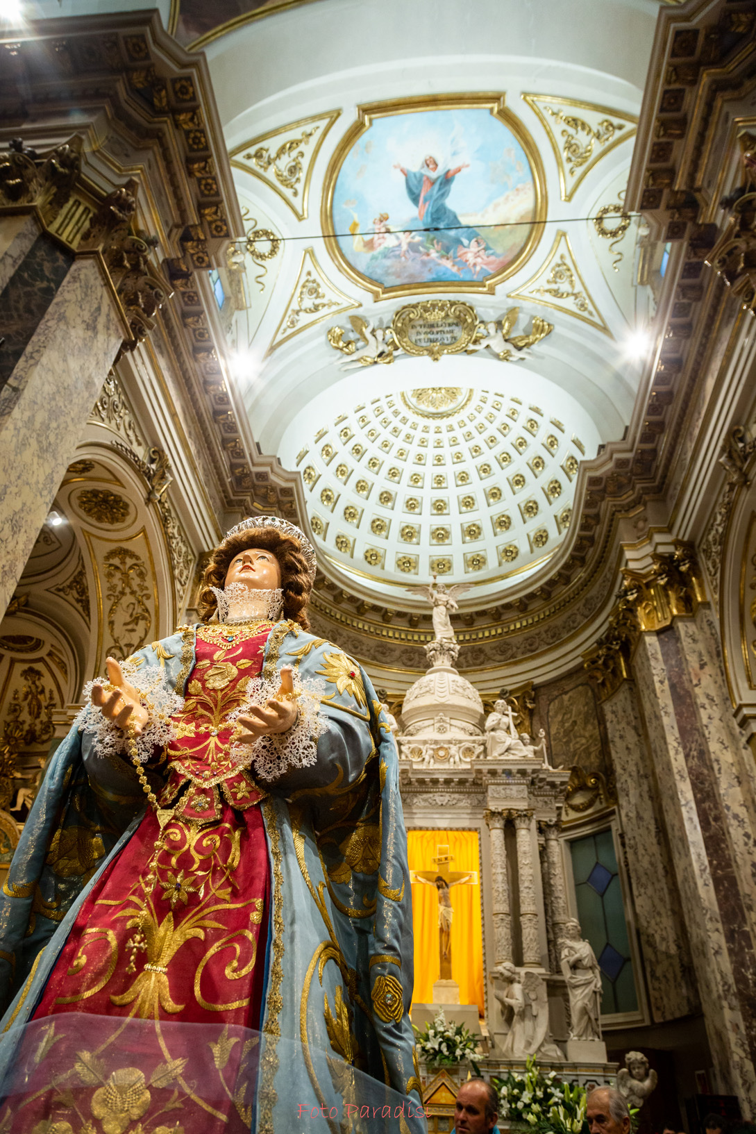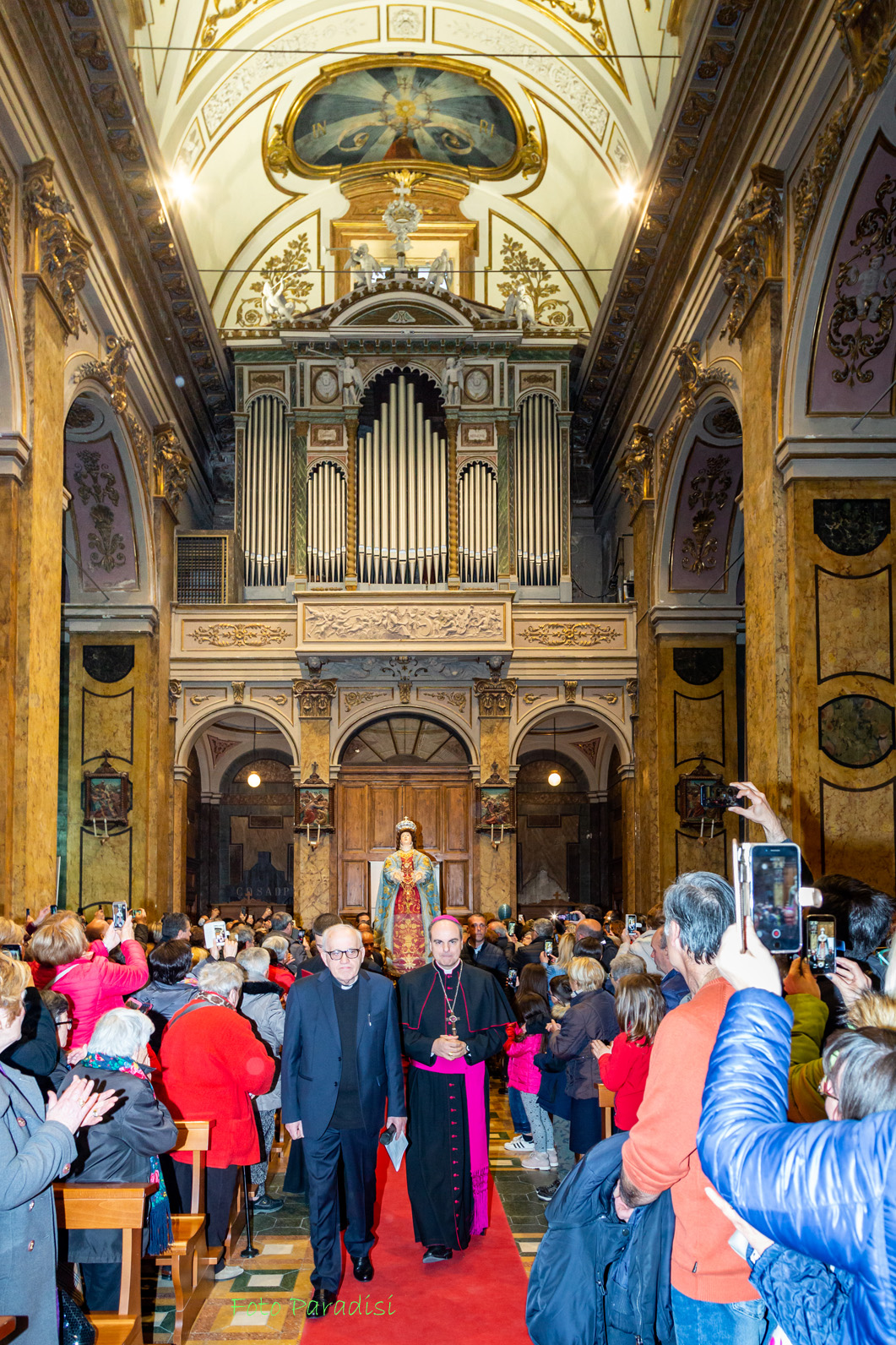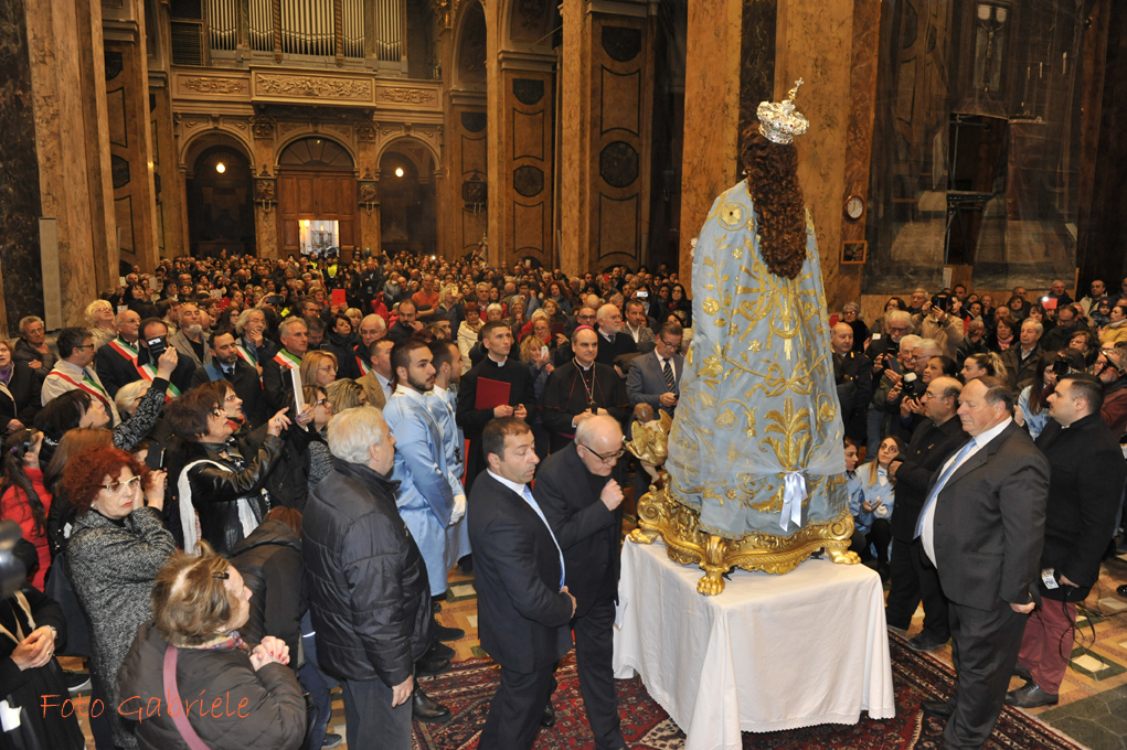 Particolarmente toccante il momento della accensione delle luci che illuminano a giorno la volta del Santuario: sorge spontaneo da tutta l’assemblea un convinto applauso. La volta è stata completamente restaurata e ripulita dalle molte scorie del passato e ora risplende, bellissima, lassù in alto a dare nuova luce a tutto l’edificio. Gli affreschi di Patini e Tedeschi risplendono di vita nuova.