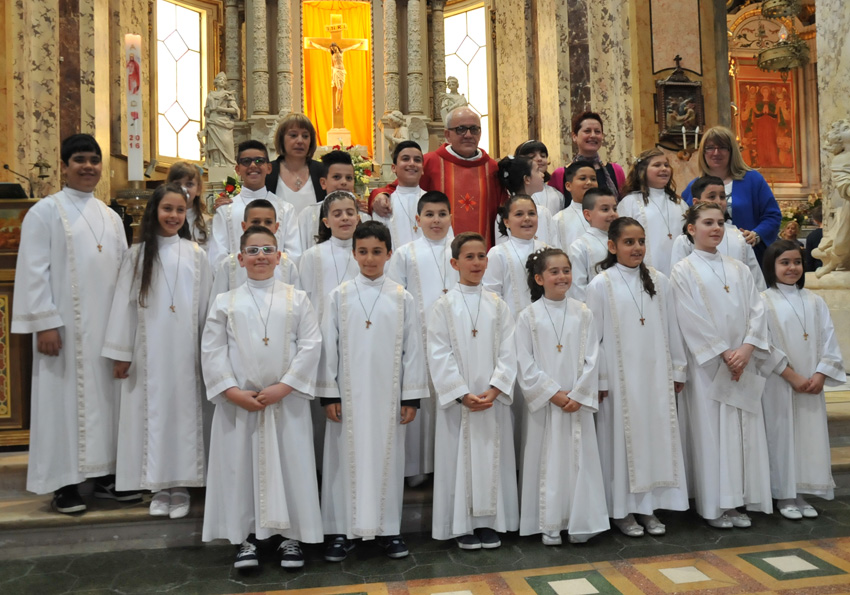 Preparati da Maria Paola, Tina, Sandra e Maria Irene, 23 bambini hanno ricevuto per la prima volta Gesù nel Sacramento dell’Eucarestia. Per loro è stata una mèta nel cammino di iniziazione cristiana, che si concluderà con il Sacramento della Confermazione, per proseguire poi con i Sacramenti della maturità, il Matrimonio e l’Ordine sacro. Ma anche punto di partenza di una più profonda relazione con Gesù, mai esperimentato così intimamente.