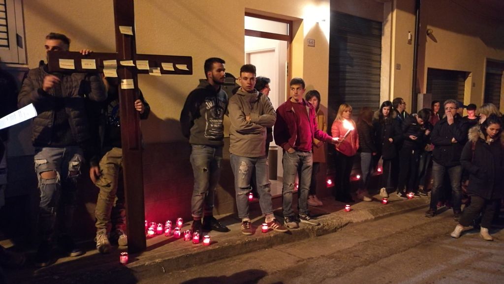Le meditazioni si sono state incentrate sulle problematiche e le difficoltà dei giovani di oggi. Ha fatto seguito qualche testimonianza di giovani che hanno cercato di superare i problemi che affliggono le nuove generazioni. La Via della croce, iniziata in Piazza Garibaldi, si è conclusa alla chiesa della Madonna della neve. Qui il Parroco, Padre Renato, ha invitato alcuni giovani a prendere le varie problematiche, che venivano man mano evidenziate sulla croce processionale mediante un post-it, a buttare tutto nel fuoco dell’amore del Signore, perché tutto si trasformi in testimonianza di fedeltà di Dio. A conclusione il ricordo del Terremoto di dieci anni fa ma anche l’invito ad accogliere nella propria vita la risurrezione e la speranza.